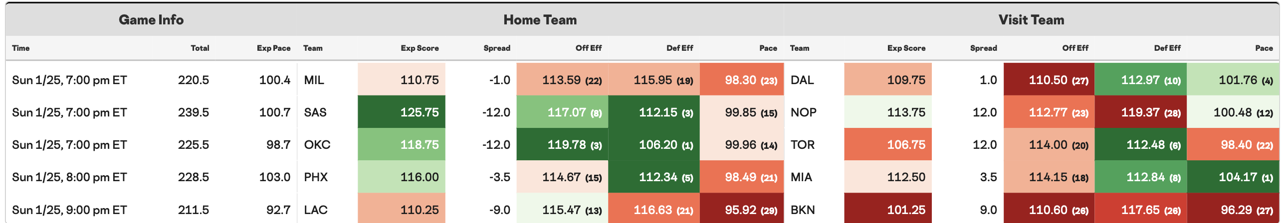 Spurs-Pelicans leads the way with the highest game total. Though I faded New Orleans elites, Trey Murphy's return and Zion Williamson's excellent play hold some value. The projected total for Clippers-Nets is disturbing and could keep us from making selections.