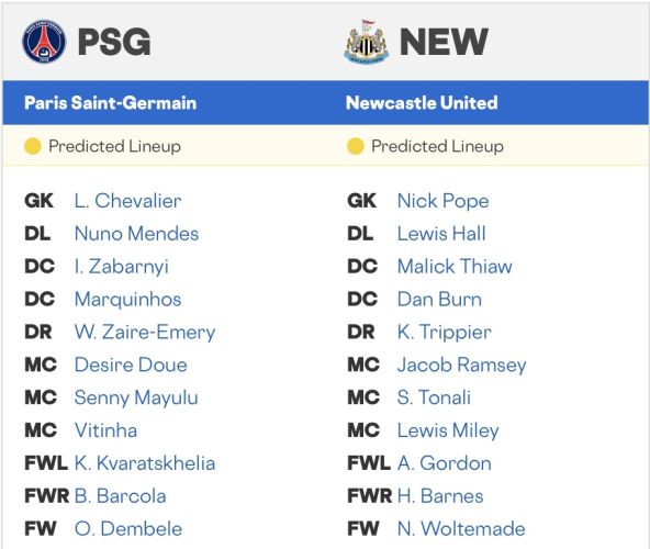 Paris Saint-Germain and Newcastle United have met just twice before dating back to 2023 when Newcastle defeated PSG 4-1 in a group stage match.